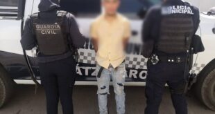 Pátzcuaro, Michoacán, 11 de enero de 2025.- Un hombre de 23 años fue detenido por elementos de la Guardia Civil mientras consumía droga en la vía pública. La detención ocurrió en la calle Cenzontle, en Potrero del Agua 3, donde los policías lo sorprendieron inhalando humo blanco con una pipa. Al revisarlo, le encontraron un envoltorio con crystal. El …